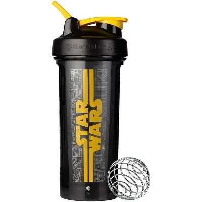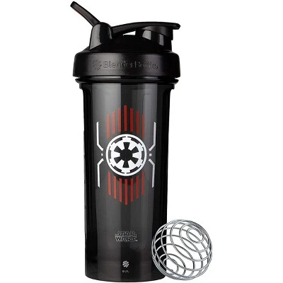 The Blender Bottle Star Wars Pro Series 28 oz. Shaker Cup uses the Blender Ball wire whisk to deliver smooth protein and nutrition shakes with ease. Building off of the tried-and-true design of the Blender Bottle Classic, the Pro Series shakers offer customer-requested features and unrivaled refinements. Pro Series Shakers sport an updated lid featuring a wider carry loop, ergonomic flip cap, and protective SpoutGuard to help keep dirty gym fingers off the drinking surface. The rounded base allows the Blender Ball whisk to mix every last bit of powder. Blender Bottle uses premium, durable Eastman Tritan plastic to help keep your bottle fresh and odor free. Stain and odor resistant. The patented mixing system uses the BlenderBall wire whisk. BPA and Phthalate free. Wash immediately after use. Top-rack dishwasher safe. Why the Whisk Ball? Unlike stationary mesh grates or other in-lid elements, the BlenderBall whips around inside the bottle as you shake. The BlenderBall is springy and bounces off both the top and the bottom of the bottle, working against the liquids. Made from electropolished, 316 grade stainless steel, the same material used in surgical instruments and implants. Add ingredients like peanut butter, applesauce or yogurt to your protein or meal-replacement shakes for added flavor – the BlenderBall whips them in with ease. The BlenderBall will never rust, chip or peel. Every BlenderBall is manufactured using a unique multistage process designed to ensure safety, quality, and longevity.