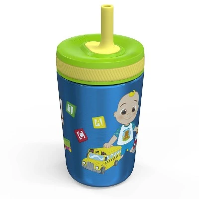 This fun CoComelon straw tumbler will keep kids hydrated without any fuss! You can prevent messes and spills with a cup that won’t leak: the attached straw has a valve that allows easy access to water, but won’t drip when the tumbler is tipped over. The straw is also made from antimicrobial materials, to help prevent the spread of germs. A screw-on lid means a secure fit, and vacuum insulation will prevent condensation from forming on the outside of the cup, in addition to keeping drinks cold. Perfect for young toddlers graduating from sippy cups, this tumbler features colorful artwork of favorite characters to make hydration fun.