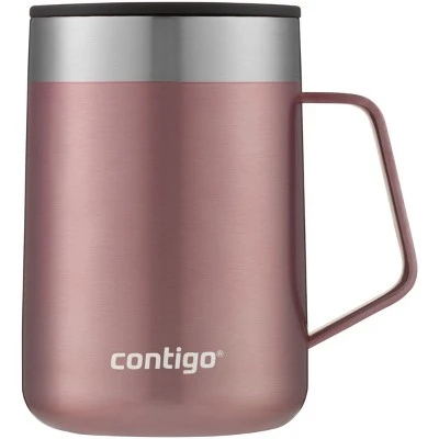The Contigo 14 oz. Streeterville Vacuum Insulated Stainless Steel Mug combines the convenience of drinks that stay hot or cold for hours with a sophisticated design in eye-catching metallic colors. This mug is perfect for sipping coffee while working or on a short walk around the neighborhood. The comfortable handle makes drinking your favorite beverages more enjoyable and the splash-proof lid keeps your drink inside the mug when closed. Wherever you are, the non-slip grip base helps prevent the mug from slipping, clanking or scratching on surfaces. The mug conveniently fits under most single-serve brewers. Lid and body are top-rack dishwasher-safe for easy cleaning. BPA-free. Drinks stay hot for up to 5 hours and cold for up to 15 hours.