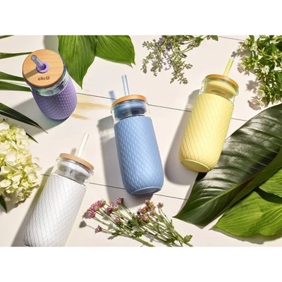 Whether you drink smoothies, iced tea, juices, or water, everything tastes better in glass! The Ello Devon 18 ounce glass tumbler with straw is designed for enjoying your favorite beverage on-the-go. A silicone sleeve provides a no-slip grip, reduces condensation and protects tabletops. Devon’s friction fit real wood lid prevents splashes for on-the-go.
