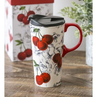 This Spring – Summer themed 17 oz. ceramic travel cup comes with a matching gift box and flip top black lid. It features red cherries and has a red handle. Dishwasher & microwave safe. At Evergreen, we are committed to producing premium, quality products to bring a touch of color and personality to your home. We respect and celebrate the uniqueness in everyone by offering one of the world’s largest selections of home and garden decor.