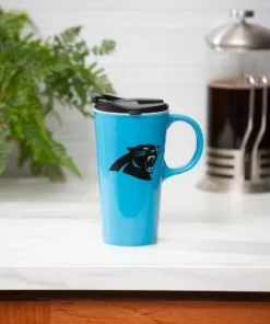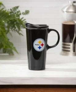 Measures approximately 5.24 x 7 inches. This ceramic travel latte mug is microwave and top rack dishwasher safe. Hand wash is recommended to extend the life of the product. Great to have for traveling, this mug holds up to 17 oz. of hot or cold liquid. Its circular-shaped handle helps you enjoy your morning coffee or hot tea comfortably. Fits into most vehicle cup holders. Plastic leak-resistant lid has 3 rings of silicone to help secure it inside of the cup. Always travel with your favorite NFL team. The sleek design of this mug features the Seattle Seahawks logo and colors, so you can showcase your fandom wherever you go. Perfect gift for a friend or family member who is a fan of the Seattle Seahawks.