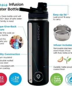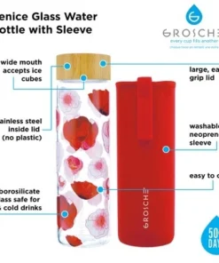 The GROSCHE CHICAGO is an all-in-one vacuum insulated stainless steel tea infuser flask with style. This stainless steel infuser bottle and travel mug is the perfect mug for hot coffee, infusing loose leaf tea, or infusing water while on the go. It is BPA-free, food-grade safe & reusable, making it much higher quality than any plastic bottle. With the vacuum insulation your beverage can stay hot for up to 12 hours and cold for up to 24 hours. The soft touch finish on the body and the lid, and the easy to use two part infuser makes this the ideal water bottle or travel tea infuser. More than a tea travel mug, its a multi-function tea and fruit infusion bottle. The bottle and lid are made of stainless steel and the body has a capacity: 450 ml/ 15.2 fl Oz.The CHICAGO infuser bottle makes the perfect gift for a tea lover with an included large two part stainless steel tea infuser, that can be used to hold your loose leaf tea, or used as a strainer to hold your fruit infusions back as you enjoy delicious fruit infused water. You can remove the infuser entirely and use it as a travel coffee mug as well. The extra long infuser steeps and infuses better than short ones.This insulated travel flask has a soft touch rubberized outer finish that makes it easy to grip and hold and it won’t easily slip out of your hand like ordinary stainless steel flasks. It’s made of vacuum insulated double walled stainless steel, and has a 18/8 stainless steel inside lid. Not for dishwasher use, its hand-wash only. Every time you buy a GROSCHE Coffee or Tea Product you’re providing 50+ days of safe water to people in need via the GROSCHE Safe Water Project. GROSCHE is a social enterprise and a certified Benefit corporation on a mission to help those without safe water, and funds its efforts with the sale of its coffee, tea, and hydration products. It makes a great gift idea as well – Its the gift that gives back.
