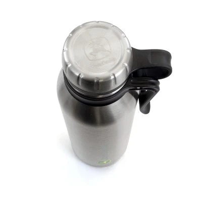 The John Deere 25.5 Ounce Stainless Steel Thermal Bottle with Cap and Carry Loop makes it easy to carry drinks around with you where ever you go. The vacuumed sealed insulated bottle maintains hot and cold beverages up to 12 hours. Ideal for “on the go”, the double wall container keeps the exterior of the bottle cold so you can carry around hot drinks. Bring along as a hydration bottle to runs, hikes, or other active outdoor activities. the worry free leak resistant cap prevents unwanted spills. Great for bringing coffee or tea for late night jobs or early birds. This bottle is made of light weight stainless steel and is hand wash only.