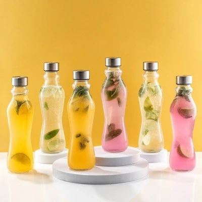 - A REFRESHING DESIGN: The Spring glass water bottles feature a stylish shape designed to fit comfortably in your hand. Sloping inwards at the middle with a beveled edge near the mouth, you can easily grip these clear glass water bottles with minimal strain. Relax and enjoy juice, sodas, coffee, and more from a trendsetting bottle at a great price.