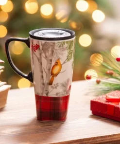 Evergreen Beautiful Only Happy When I’m Fishing Ceramic Travel Cup with Lid – 5 x 4 x 7 Inches