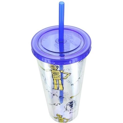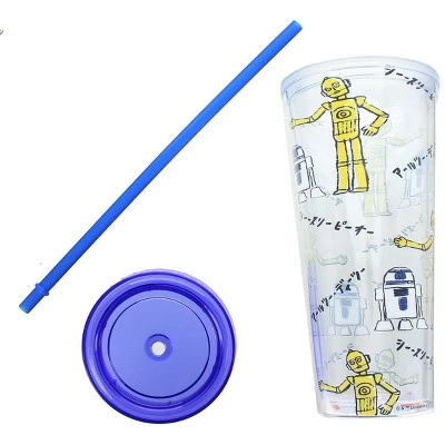 - FUN DESIGN: Tumbler features Japanese writing with the droids R2-D2 and C-3PO drawn in a fun, child-like manner.