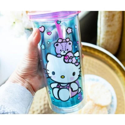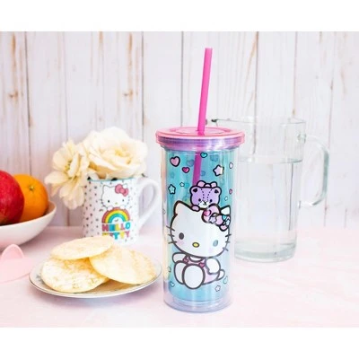 - BOTTOMS UP: Celebrate Sanrio’s Hello Kitty with this officially licensed cold cup featuring the cute cat and a stack of yummy donuts!