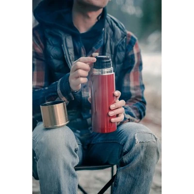 This stylish thermal bottle will keep 24 oz of liquids hot or cold for up to 24 hours. Made out of BPA free 18-8 stainless steel and insulated with double wall construction, this bottle will keep your drinks hot for hours. Featuring a one touch insulated stopper and a wide, tip-proof base. Bonus: It also looks like a shotgun shell and is sure to start a great conversation.