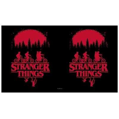 - Featuring silhouettes of your favorite characters like Dustin Henderson, Mike Wheeler, Lucas Sinclair, and Eleven biking over Demogorgons.