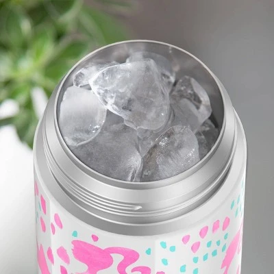 Kids love FUNtainer® products from Thermos® brand, but parents love them even more. The FUNtainer 12oz Vacuum Insulated Stainless Steel Water Bottle with a silicone straw keeps drinks cold for up to 12 hours. No make believe required. FUNtainer products are always made with love from BPA-free materials. The double wall stainless steel construction is built to handle drops, dings and assorted roughhousing. The 12oz bottle includes an integrated carry handle with soft-touch grip, making it easy for kids to carry with them throughout the day. The handle can also be folded down when not in use. Keep germs away with the hygienically covered straw which is removable for easy cleaning. To clean, you can pop your FUNtainer water bottle in the dishwasher; however washing by hand is recommended. Not for use with hot liquids. Customize your FUNtainer bottle with adhesive name labels that can be firmly adhered to any FUNtainer product. Two peel and stick labels are included inside this FUNtainer product. Fun for the kids, and easy for the parents. Just write, peel and stick!