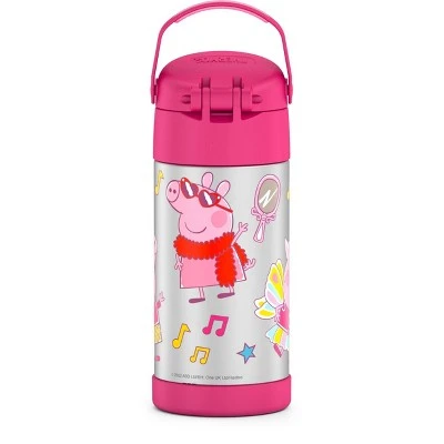 Kids love FUNtainer® products from Thermos® brand, but parents love them even more. The FUNtainer 12oz Vacuum Insulated Stainless Steel Water Bottle with a silicone straw keeps drinks cold for up to 12 hours. No make believe required. FUNtainer products are always made with love from BPA-free materials. The double wall stainless steel construction is built to handle drops, dings and assorted roughhousing. The 12oz bottle includes an integrated carry handle with soft-touch grip, making it easy for kids to carry with them throughout the day. The handle can also be folded down when not in use. Keep germs away with the hygienically covered straw which is removable for easy cleaning. To clean, you can pop your FUNtainer water bottle in the dishwasher; however washing by hand is recommended. Not for use with hot liquids. Customize your FUNtainer bottle with adhesive name labels that can be firmly adhered to any FUNtainer product. Two peel and stick labels are included inside this FUNtainer product. Fun for the kids, and easy for the parents. Just write, peel and stick!