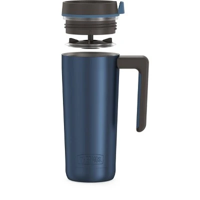 Recharge your sense of adventure with the 18oz Stainless Steel Travel Mug from the GUARDIAN COLLECTION BY THERMOS. From city streets to mountain trails, this mug keeps drinks protected everywhere you go. Thermos™ vacuum insulation technology keeps coffee and tea hot up to 5 hours. Cold drinks stay icy for up to 14 hours. A comfort-soft handle fits perfectly in your hand and a slide lock lid prevents spills and leaks. Made with minimal parts that are dishwasher safe and easy to clean. Just fill it up and you’re ready to take on the day.