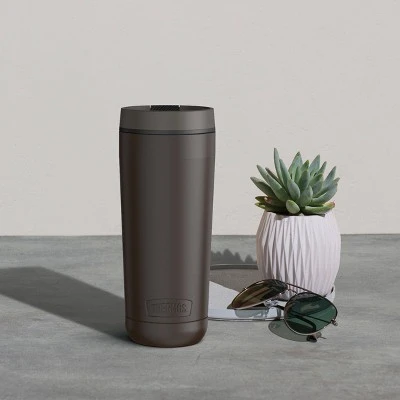 Keep on rolling with the 18oz Stainless Steel Travel Tumbler from THERMOS BRAND. From city streets to mountain trails, this tumbler keeps drinks protected everywhere you go. Thermos vacuum insulation technology keeps coffee and tea hot up to 5 hours. Cold drinks stay icy for up to 14 hours. A comfort-soft handle fits perfectly in your hand and a slide lock lid helps prevent spills and leaks. Made with minimal parts that are dishwasher safe and easy to clean. Just fill it up and you’re ready to take on the day.