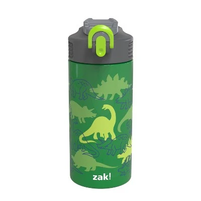 The water bottle holds 14 ounces and is made of food-grade stainless steel, durable enough for kids to take anywhere they want. It’s vacuum insulated, so cold drinks stay cold for longer and condensation won’t form on the outside of the bottle. The screw-on lid has a built-in carrying loop for easy transportation, and doesnt leak when its closed, so the bottle can be tossed into a bag for worry-free travel. When its not being used, the comfortable silicone spout can be covered to keep it clean, with a button that easily opens it and a lock to keep it shut. The bottle should be washed by hand to preserve the vacuum seal and keep the artwork bold and bright, though the lid can be washed in the top rack of the dishwasher. Do not microwave.