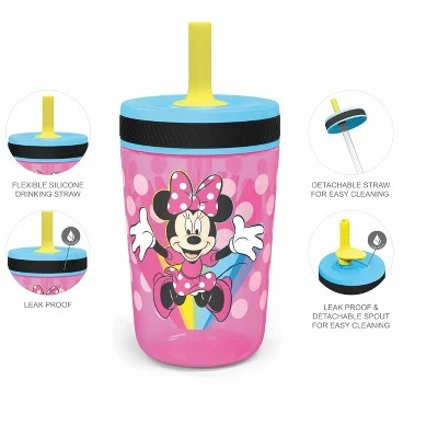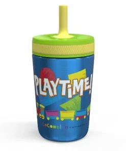 Prevent messes and spills with a straw tumbler that will not leak–the attached straw has a valve that allows easy access to water, but will not drip when the tumbler is tipped over. The screw-on lid fits securely, and everything is made of durable plastic and silicone. Perfect for young toddlers graduating from sippy cups, this tumbler features colorful artwork to make hydration fun. it is BPA free, easy to clean in the dishwasher, and should not be microwaved.