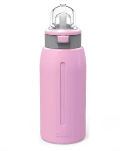 This fun water bottle will help your toddler get an early start on hydration! The cup is made of durable, food-grade stainless steel, which helps keep beverages tasting great. It holds 12 ounces and has double-wall vacuum insulation to prevent messy condensation and keep drinks cold for up to 10 hours. A cute design encourages kids to enjoy drinking water, and it’s easy to take with you on the go–the bottle fits in most car cup holders, and has a built-in carrying handle that can be clipped to diaper bags, backpacks, and strollers with a carabiner. The push-button lid is simple to open, but leak-proof when closed, with a cover to keep the spout clear of debris. For your peace of mind, the spout is also made of antimicrobial materials to help prevent the spread of germs! Everything is completely BPA free and should not be microwaved. Hand washing is recommended.