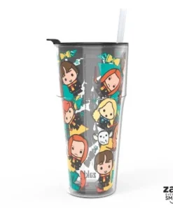 This kids water bottle holds 16 ounces and is made of durable, BPA-free plastic. The screw-on lid has a built-in carrying loop for easy transportation, and doesn’t leak when it’s closed, so the drinking bottle can be tossed into a bag for worry-free travel. The spout also includes a cover so it stays clean when it is not being used. Everything is dishwasher safe, though to keep the artwork bold and bright, we recommend hand washing. Do not microwave.
