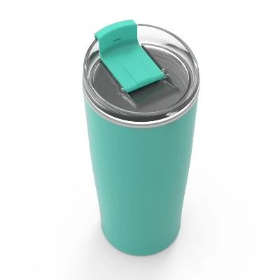 The tumbler fits in most car cup holders, with a flip lid that locks back when open and prevents leaks when closed. it is vacuum insulated, keeping hot drinks hot and cold drinks cold, and stays free of condensation. Durable and BPA free. It should be hand-washed, though the lid is dishwasher safe.